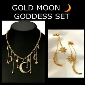 NWT 🌙CRESCENT MOON AND STARS SET NECKLACE AND EARRINGS. ✨️