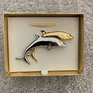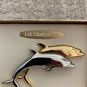 Vintage Liz Claiborne Gold and silver plated dolphin brooch. Signed on back of brooch.Looks so pretty on a dress to go out. Or casual too. Get for a gift or yourself. Never been worn.