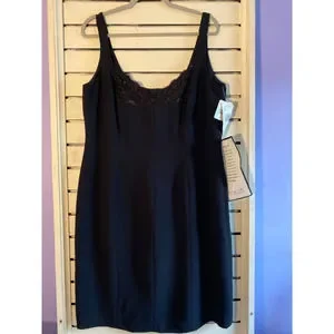 Jones New York Woman’s sleeveless black dress size 16 black lace top with decorative beads. Zipper back. Polyester dress and lining. Preowned with tags still attached, never worn. Original price $129.