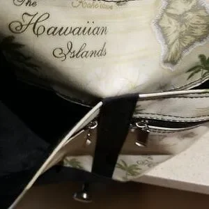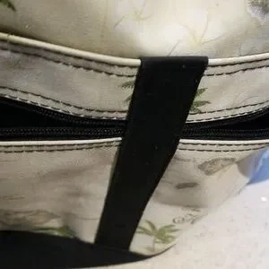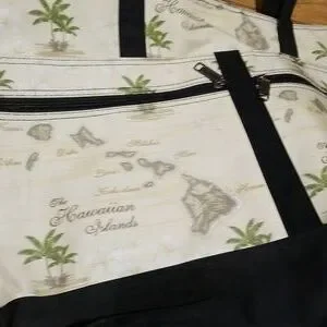 EUC Hawaiian Island handled bag zip top/inside zipped pocket 2 slide in pockets and 2 zippered pockets in front. Measurements approximate 14x19x5". Bundling Available
