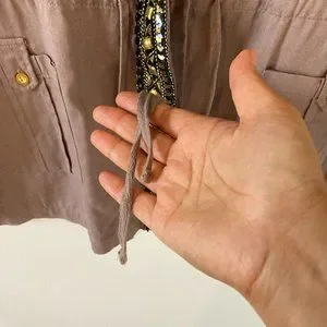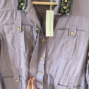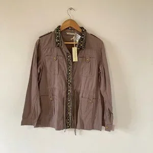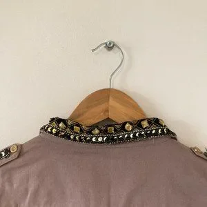BNWT Innocence Clothing Women Dark Beige Embellished Border long Sleeve Jacket