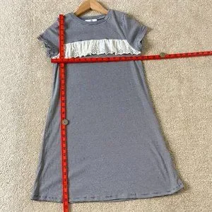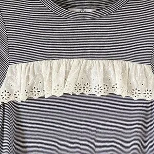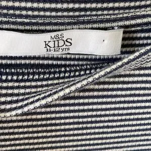 Upgrade your little girl's wardrobe with this stylish and comfortable preloved M&S striped jersey dress with broderie anglais detailing. This dress is perfect for girls aged 10-12 years old and is ideal for casual or formal occasions.