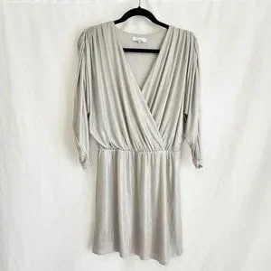 PARKER Silver Metallic Flattering Stretchy Cocktails Party Mini Dress Size Medium P5K676IS RN# 145761.