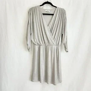 PARKER Silver Metallic Flattering Cocktail Mini Dress Size M NEW NO TAGS!