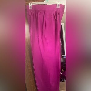 ACCENT 2PC 100% Silk, color magenta, Button Down Long Sleeve Shirt and Zip-Up two button pants. Shirt is size S, two front pockets, six buttons down the front of shirt, one button on each arm sleeve, pants are 100% silk, size M, zip up with elastic waist along back of pants, NWOT, great condition