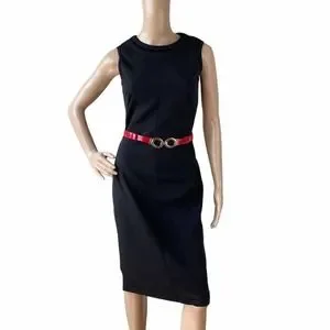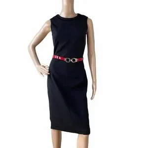New D&G Dolce & Gabbana Black Sleeveless Velvet Trim Sheath Dress IT44/US8