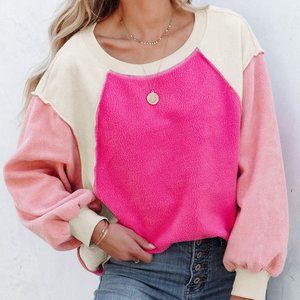Rose Colorblock Long Sleeve Pullover Fleece Sweatshirt