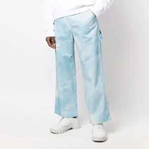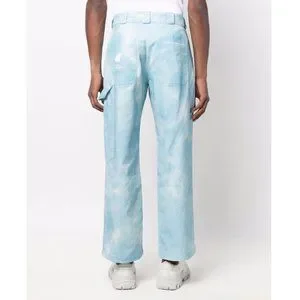 Pale-blue/white cotton acid-wash flared trousers from MSFTSrep featuring acid wash, front button fastening, two diagonal pockets to the sides and flared design.