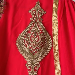 Salwar Kameez Pink Fuschia Indian Gold Embroidered Parallel with Tunic