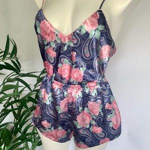 Matching vintage lingerie & lounge set, robe, shorts & camisole. Size not readable anymore. Shorts & camisole best for S, robe is OS, please check measurements.