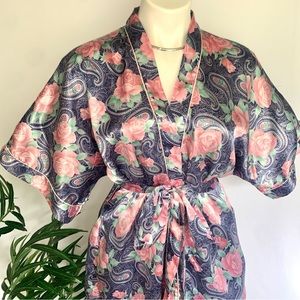 s a t i n :: Silky Floral 3pc Set Satin Robe Shorts Camisole