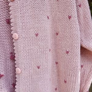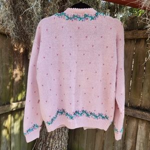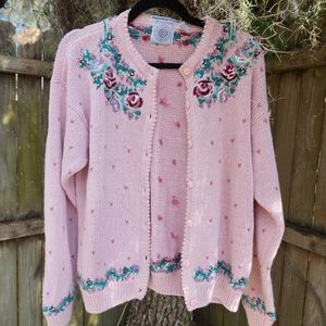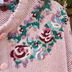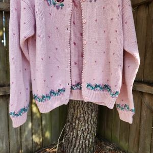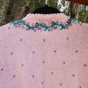 The prettiest embroidered sweater. Pretty in Pink sweetheart and floral cardigan Heavy knit, very warm.