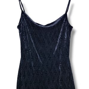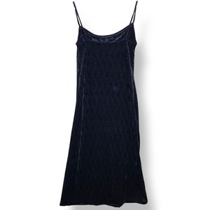 Vintage Velour Maxi Dress Size 14 Y2K Spaghetti Strap Cowl Neck Black