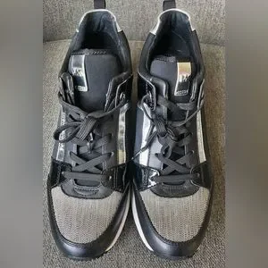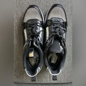 Michael Kors Georgie Mixed-Media Trainer, black, white, silver