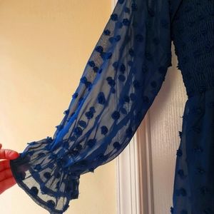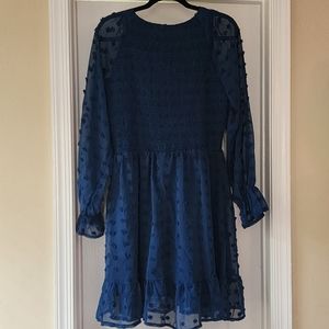 Long Sleeve V Neck Smocked Short Swiss Dot Ruffle Dress