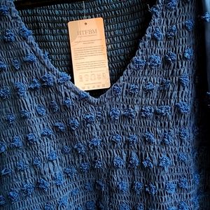 Long Sleeve V Neck Dress with Stretchy Smocked Bust and Waist Design.