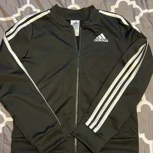 Adidas Black Jacket with white stripes down sleeves