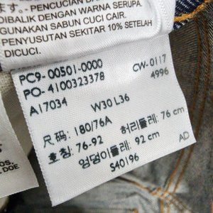 Levi's 501 30X36 Raw Unwashed Shrink To Fit Straight Leg Denim Jeans Men's NWT