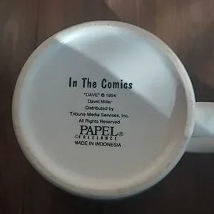 Vintage 1994 In The Comics 'Dave' Cartoon Mug. No chips or cracks. Made in Indonesia. 4 Inches Tall/ 3 Inches Round.