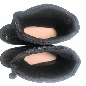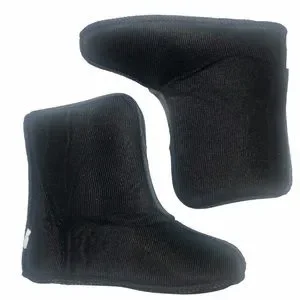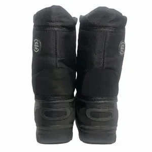 Waterproof synthetic uppers; top elastic drawstring, front strap with hook-and-loop closure for adjustable fit. Insulated removable liner, fabric boot lining, cushioned footbeds, and synthetic lug soles.