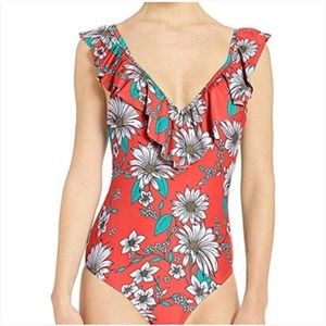 Jessica Simpson Women’s standard one piece ruffled shoulder swimsuit