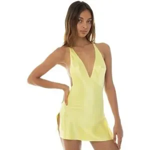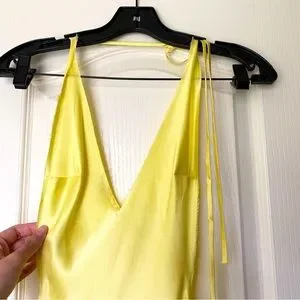 A silk petal that skims just so. Atla is draped in heavy silk charmeuse with hip-high side slits and a tie at the neck.