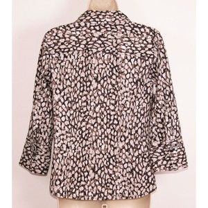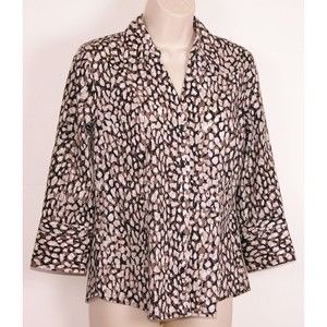 Alfani Womens V-Neck Shirt sz 6 Animal Print Button Front Stretch Leopard Brown