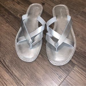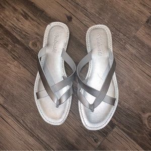 Madewell The Boardwalk Thong Sandal In Metallic Leather