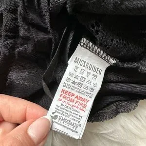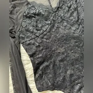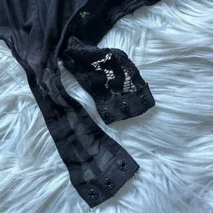 EUC Missguided black sheer lace bodysuit. Lace body with sheer mesh sleeves and back. Cheeky coverage. Triple button gusset closure. Polyamide/elastane with stretch. US size 6. Excellent condition, no flaws or snags.