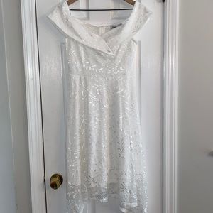 Jasambac white lace off the shoulder dress asymmetrical hem Size S
