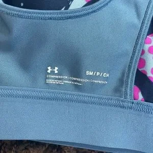 Under Armour sports bra and cropped legging matching set. Both pieces are being sold together! Great for exercise or athleisure with a sweater on top!