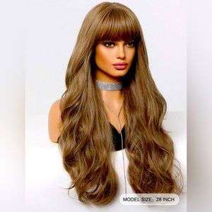 Brown, synthetic, fiber, long bang 28 inch wig