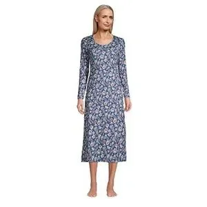Lands’ End Supima Cotton Long Sleeve Nightgown. Start and end every day in total relaxation. Made of everyone's favorite Supima cotton, this sleep tee is so soft and so comfortable, you'll declare every day to be pajama day. Tag free, Crewneck, Long sleeves, Curved hem, Locker loop for hanging.