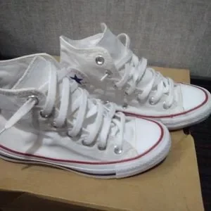 These are the chuck Taylor high tops, white red and blue.They are in great condition,also they are a very comfortable pick of shoe .same day shipping of all my products.feel free to ask questions.Shoes come looking exactly like in the picture. 100% good business and honest seller.thanks