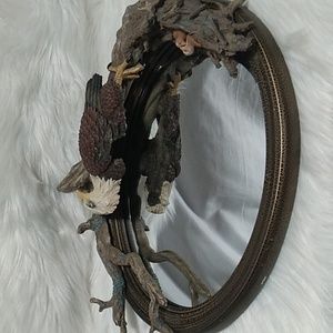 LAST DROP! Antique Bald Eagle & Babies On A Tree Limb Mirror In Great Condition