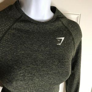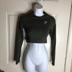 Gymshark Women's Cropped Long Sleeve Thumbhole Athletic Top Green ~ Size XS