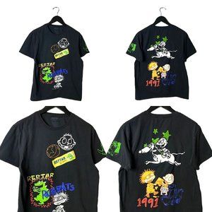 Nickeledeon T Shirt Rugrats Cartoon Characters Double Sided Graphic Tee Short Sleeve 100% Cotton Solid Logo Print Adult Black Large L Adult Unisex Fit