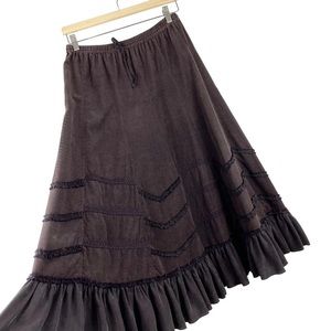 Monsoon Gypsy Skirt Brown 8/10 Silk Frill Needlecord Elastic Waist Hippie Boho