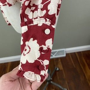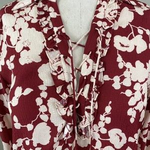 Item- Alexis Womens Blouse Top S Red Floral Lace Up Boho Rayon Viscose Neiman Marcus