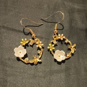 Adorable, dangling 1" hoop earrings with bee and flowers.