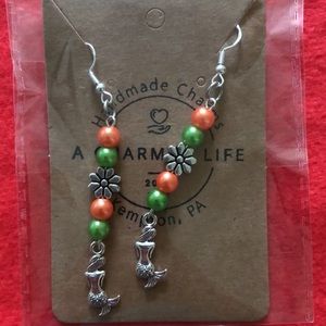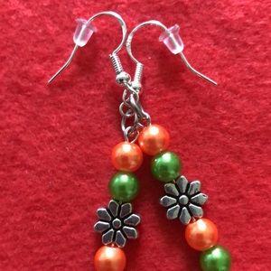 Beautiful silver green & orange simulated pearl beads with silver flower 🌺 & mermaid 🧜♀️ charms. All the rage on the runways