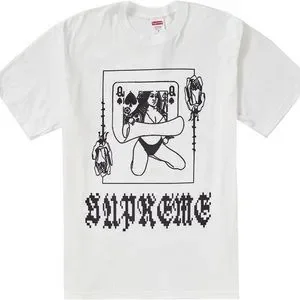 Supreme's Queen Tee was released as a part of Supreme's FW19 Week One drop. The tee was released in 8 colors and features a graphic that says Supreme on the front below a Queen playing card pulled back to reveal a woman underneath. The Supreme Queen Tee was released on August 22nd, 2019 and retailed for $38 USD.