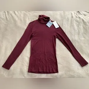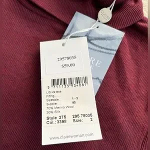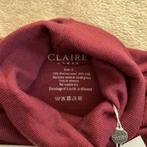 Claire Woman Size 2 Roll Neck Top long sleeve Body Con Blouse merino wool silk