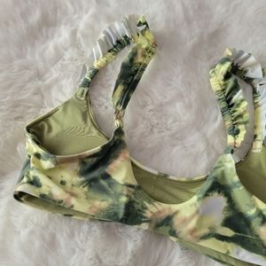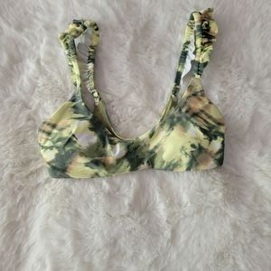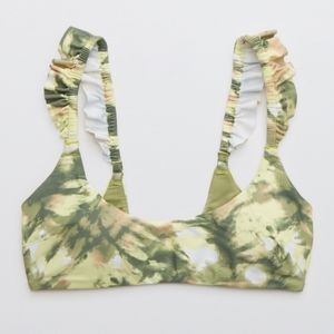 🐸AERIE BRAND NEW PRINTED RUFFLE SCOOP BIKINI TOP SIZE S