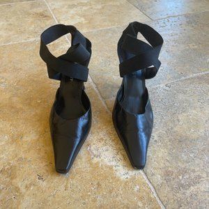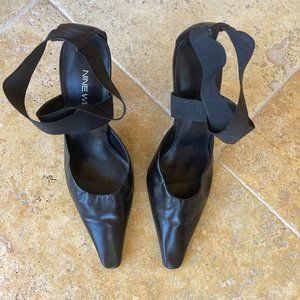 Nine West Leather Pointed Toe Kitten Heel Elastic Cross Ankle Strap Size 5M