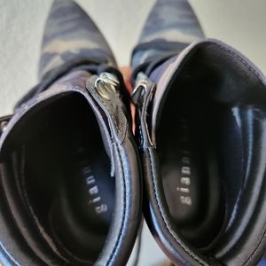 GIANNI BINI Jarret Green/Black Camo Print Suede Lace-up Booties Size 6