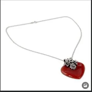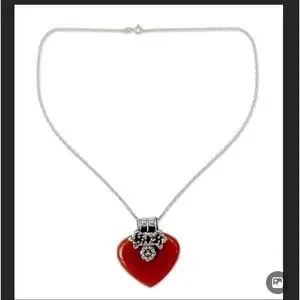 Brand new never worn large Carnelian heart with silver floral around heart , I found some red heart earrings that go with it , include with necklace , if like additional pictures let me know