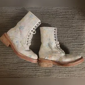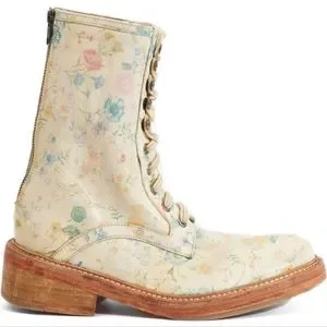 NWOB Free People Santa Fe Combat Boot in floral ecru