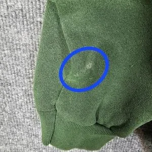 There is a white mark on inside right sleeve by the cuff and a small snag/hole back of left arm. PLEASE view last two pictures