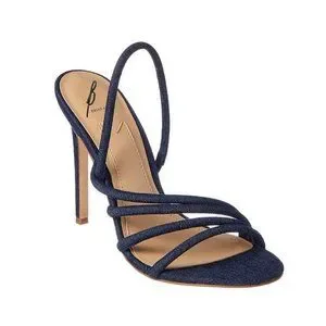 These heels feature a textile upper, sophisticated slip-on design, strappy silhouette, lightly padded footbed, wrapped stiletto heel, leather sole